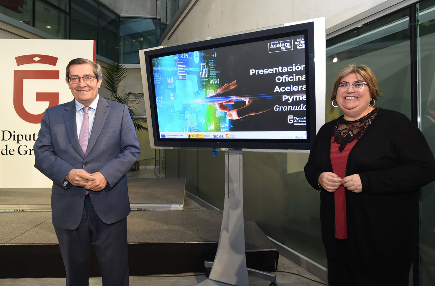 El presidente explicó que Red.es (la Entidad Pública Empresarial adscrita al Ministerio de Asuntos Económicos y Transformación Digital) ha aprobado la solicitud que hizo la Diputación de Granada para la creación de una Oficina Acelera Pyme para la provincia de Granada, en el marco de la Convocatoria del Programa Acelera Pyme, que está financiado con fondos del Plan de Recuperación, Transformación y Resiliencia.