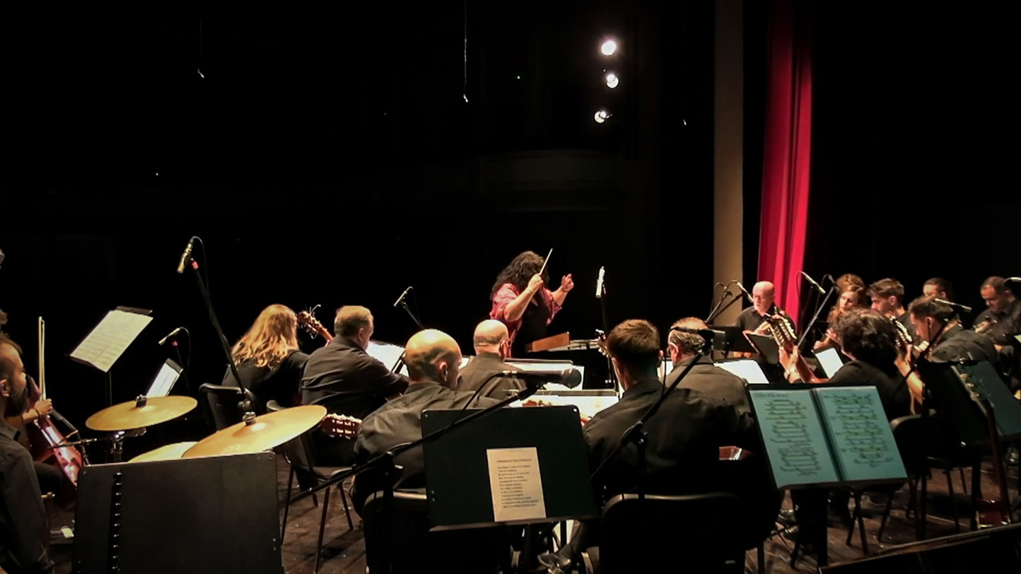 La velada se abrió con repertorio escrito específicamente para instrumentos de plectro, reivindicando su incorporación a los conservatorios andaluces. La OLE interpretó el “Concierto de la Media Luna” (José Luis Barroso, 1969), en sus tres movimientos (Recuerdos, Elegía y Danza). A continuación sonaron dos obras de Ricardo Sandoval (1971): Cubandolina, inspirada en melodías y ritmos cubanos, y Madrid, una fusión del son jarocho con la bulería flamenca. Obras de gran belleza y exigencia técnica que mostraron la solidez de la orquesta.