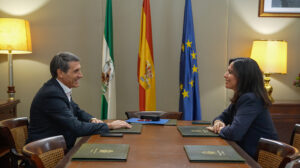 Pedro Fernández analiza con la nueva presidenta de la CHG la gestión eficiente y eficaz del agua para garantizar el desarrollo social y económico de Andalucía. 28 de septiembre de 2025.- El delegado del Gobierno de España en Andalucía, Pedro Fernández, ha recibido a Gloria María Martín, nueva presidenta de la Confederación Hidrográfica del Guadalquivir (CHG), organismo dependiente del Ministerio para la Transición Ecológica y el Reto Demográfico (MITECO), a quien ha trasladado su enhorabuena por “situarse al frente de una autoridad hidrográfica donde el aprovechamiento y la gestión eficaz y eficiente de este recurso natural resulta esencial para el desarrollo económico y social en nuestra comunidad, seriamente afectada por las consecuencias del cambio climático”.