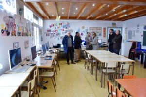 Por su parte, la delegada de Inclusión Social y el coordinador provincial del Instituto Andaluz de la Juventud, IAJ, centraron su recorrido en iniciativas dirigidas a la juventud. En primer lugar, visitaron el centro sociocultural “El Ángel”, donde recientemente se ha reforzado el equipamiento informático con la adquisición de nuevos ordenadores de sobremesa y portátiles destinados a los usuarios más jóvenes. Esta mejora ha sido posible gracias a una subvención de 10.000 euros concedida por la consejería de Inclusión Social, con financiación procedente del Mecanismo de Recuperación y Resiliencia y del Plan de Recuperación, Transformación y Resiliencia. La ayuda se enmarca en una línea específica orientada a la creación de espacios de ocio seguro para la infancia y la adolescencia.