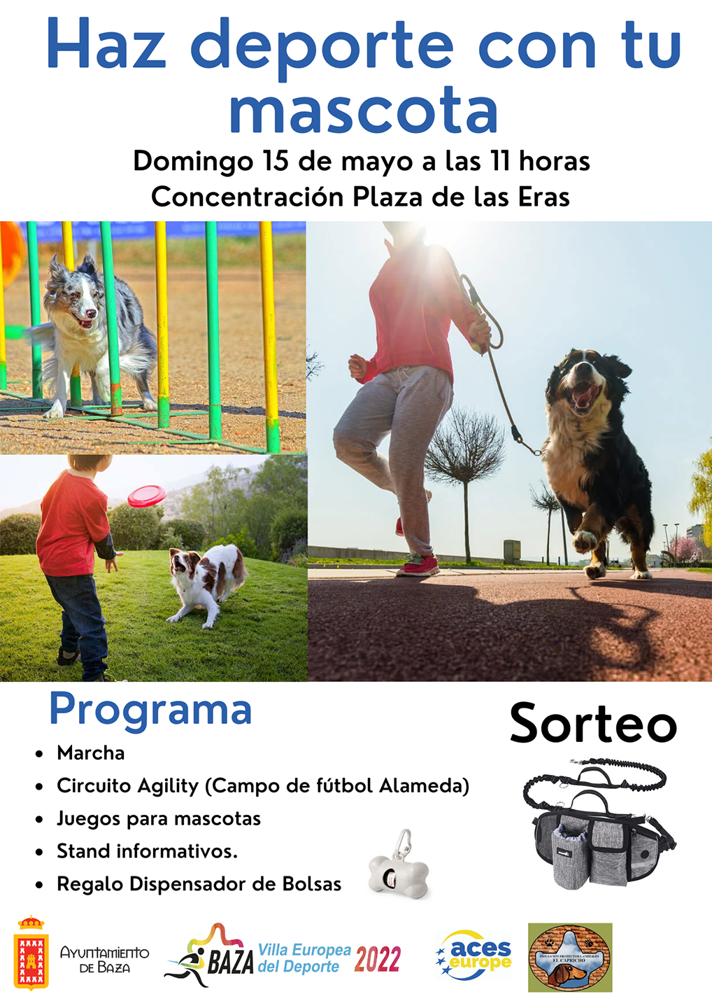 “Haz deporte con tu Mascota”, actividad organizada desde el Área de Deportes para el próximo domingo. El próximo 15 de mayo, a las 11 de la mañana, será el momento para que una vez volvamos a conectar con el deporte en Baza, aunque en esta ocasión no lo van a hacer los deportistas solos, sino que lo van a poder hacer con sus mascotas.