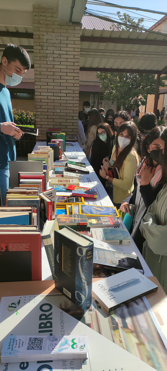 Actividades relacionadas con el día del libro en el IES Pedro Jiménez Montoya. Tomando como referencia la celebración del día del libro, la biblioteca del IES P. Jiménez Montoya ha desarrollado una serie de actividades que han tenido como objetivo facilitar a la comunidad educativa el contacto directo con el libro tradicional como elemento tangible sobre el que desarrollar el gusto y el ejercicio de la lectura como factores esenciales de una educación que promueva la libertad y el espíritu crítico de sus alumnas y alumnos. Por otra parte, también se buscaba acercar al alumnado a la consideración de una forma de ocio que fomentara la imaginación y la posibilidad de proponer realidades alternativas que mejoren nuestras vidas.