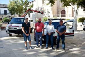 Crece el parque móvil municipal con la incorporación de dos nuevos vehículos, una furgoneta multiusos y un camión con pluma hidráulica. El parque móvil del Ayuntamiento de Baza ha crecido con la llegada de dos nuevos vehículos que ya se han incorporado en los distintos servicios municipales. Se trata de una furgoneta multiusos, que podrá utilizarse en diferentes concejalías y para diversas funciones de logística, y de un camión de pequeñas dimensiones con pluma hidráulica, que también se ha puesto a disposición de todas las concejalías. Ambos vehículos se presentaban oficialmente, tras su rotulación en los primeros días de septiembre.