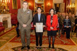 Visiblemente emocionada, María expresó su honor al recibir esta condecoración, aceptándola con un profundo respeto y gratitud. Explicó que, para ella, «es un reconocimiento que va más allá de lo personal, reflejo de los valores y principios que unen a todo aquello que formamos y creemos que la parte del esfuerzo y la disciplina y el compromiso va más allá de una causa mayor». Finalmente, dedicó la medalla a los que la han apoyado, exigido y motivado en su carrera y por el respaldo que le han dado siempre, comprometiéndose a seguir representando estos valores en el futuro.