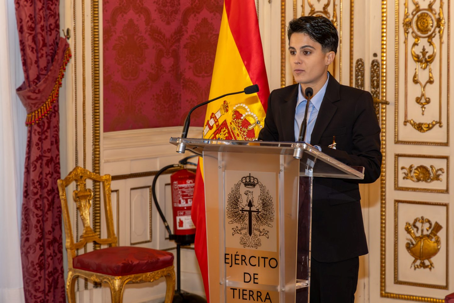 El JEME, en un discurso muy emotivo, repasó su carrera profesional, recalcando que es una extraordinaria atleta que, a pesar de su juventud, dio y seguirá dando «días de gloria, orgullo y alegría a España y a los españoles. A lo largo de su vida personal y práctica deportiva ha sido ejemplo de esos valores que vinculan la milicia y el deporte».