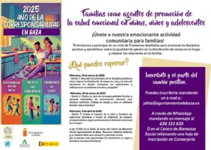 A lo largo del año, la localidad acogerá una serie de actividades dirigidas a las familias de Baza que podrán participar en actividades dinámicas. Desde stands informativos en diversos eventos que se celebran en nuestra ciudad, a talleres para familias, eventos en colegios y una gran Gymkana de Corresponsabilidad, el programa busca generar un impacto positivo en la comunidad, mejorando el bienestar familiar.