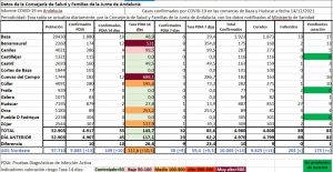 Las comarcas de Baza y Huéscar sumaban ayer otros 10 nuevos contagios que vuelven a subir su tasa de incidencia a 14 y a 7 días y con el buen dato de 9 personas curadas y 3 altas hospitalarias. Nueva jornada de subidas de casos nuevos de Covid en 5 de los municipios correspondientes a las comarcas de Baza y Huéscar, conforme a la evolución que se desprende de los datos facilitados por la Consejería de Salud y familias de la Junta de Andalucía, en los siguientes municipios: