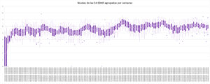 Los resultados de los informes, publicados a lo largo del mes de enero de 2023 en la página web del MITECO, muestran una situación de disminución paulatina, con niveles incluso inferiores a los registrados durante los meses de junio y julio de 2022. Durante este periodo, se alcanzó un valor máximo en la semana del 26 de junio al 7 de julio, con una concentración promedio del virus un 60% mayor a la registrada en la última semana de muestreo publicada, del 22 al 28 de enero de 2023.