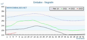 A continuación ofrecemos la reseña semanal actualizada, en la que se ofrece una idea de los datos más destacados sobre la situación en la que se encuentran los embalses, así como la evolución comparativa con respecto a la semana anterior, la misma semana de un año antes y la comparativa con la media de la misma semana durante los 10 últimos años.