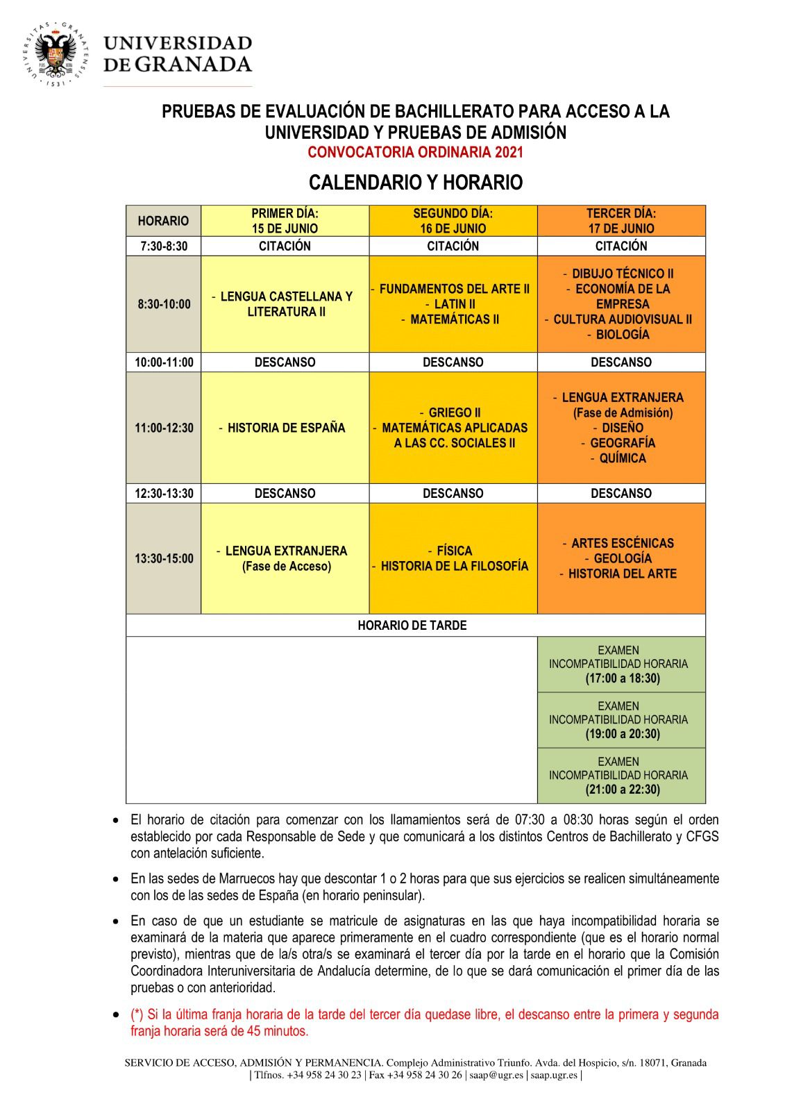 La Prueba de Evaluación para el Acceso a la Universidad (PEvAU) y las Pruebas de Admisión, en su convocatoria ordinaria, se están desarrollando desde la mañana de este martes, y a lo largo de los días 16 y 17 en horario de mañana, en las 34 sedes que la UGR ha repartido por Granada, Ceuta y Melilla; y las siete sedes en el caso de los centros educativos de Marruecos.