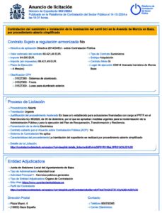 Abierto el proceso de licitación abierta la iluminación del carril bici en la avenida de Murcia. El proceso de licitación para el suministro e instalación del sistema de iluminación del carril bici de la avenida de Murcia ya está en marcha, según ha anunciado la Plataforma de Contratación del Sector Público. El proyecto, que sigue el procedimiento abierto simplificado, cuenta con un presupuesto base de 84.000 euros (IVA incluido) para su ejecución durante el próximo año.