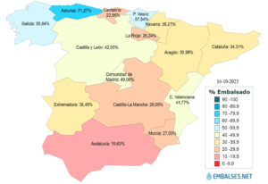 Del mismo modo, una situación que repite los malos datos de semanas anteriores, en el sentido de que tampoco mejoran la situación con respecto al pasado año, en el que también hubo problemas de sequía, cuando se empieza a dar por finalizado el “veranillo de San Miguel”, pero esta vez con unos pronósticos en los que el agua podría llegar en los próximos días, sobre todo en el oeste español y andaluz.