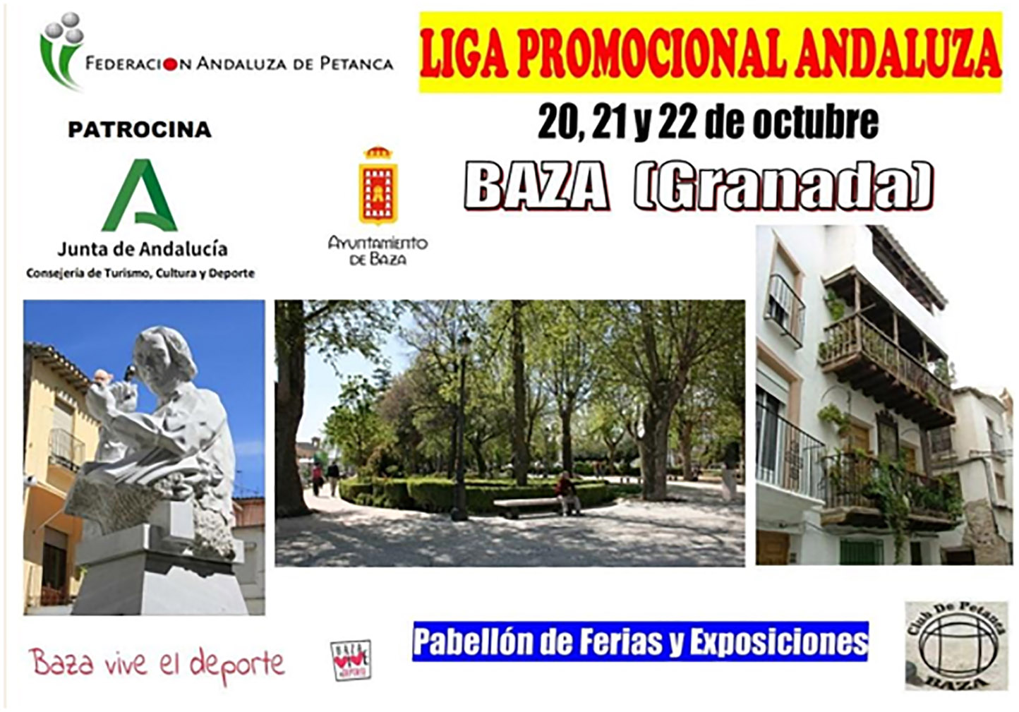 El viernes 20, en este caso en los locales del Pabellón de Ferias, comenzará una nueva competición de petanca correspondiente a la Liga Promocional Andaluza, que se extenderá en este mismo espacio hasta el domingo. Se espera la llegada a Baza de jugadores de toda la comunidad, animados principalmente por la magnífica organización que suele preparar el Club de Petanca Baza.