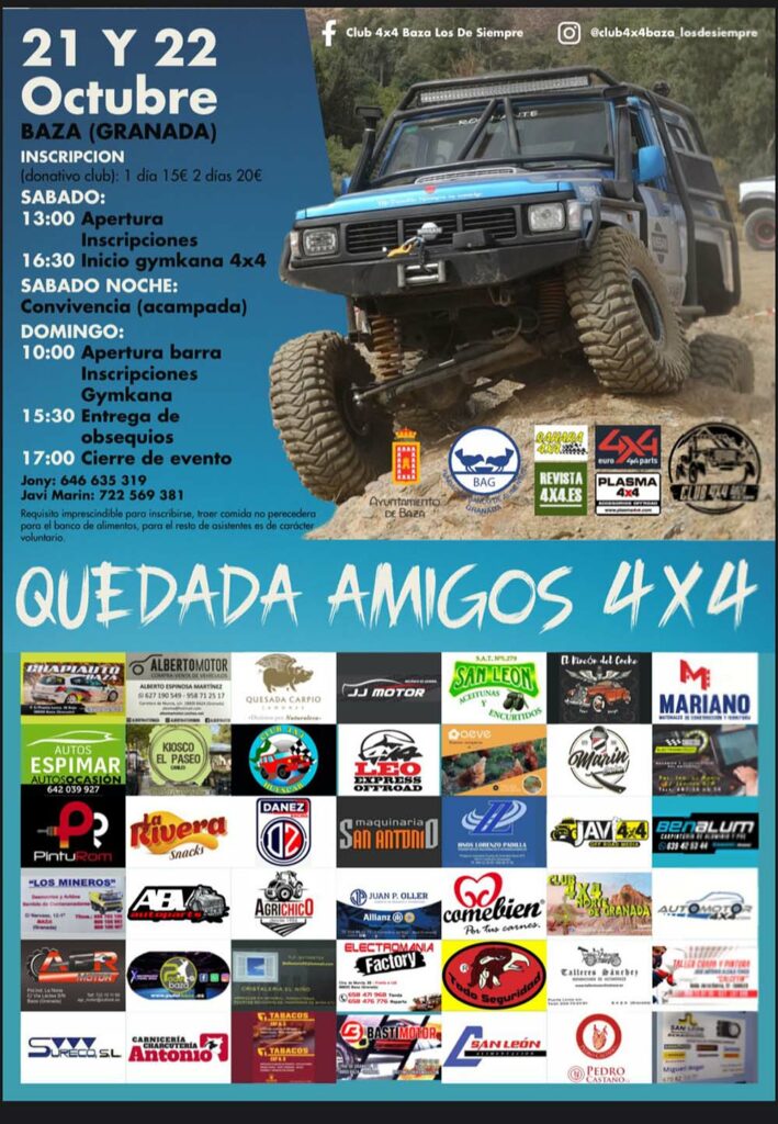 Los días 21 y 22, sábado y domingo, volverán a rugir los motores 4×4 con la Quedada de Amigos 4×4 que ha preparado la Asociación “Los de Siempre”. El espectáculo comenzará a las 13:00 horas del sábado, con la apertura de inscripciones, y continuará a las 16:30 con el inicio de la Gymkana, tras lo que la jornada concluirá con una acampada de convivencia nocturna. La entrega de obsequios será el domingo a las 15:30 horas y, para poder participar hay que aportar alimentos no perecederos, que serán entregados después al Bando de Alimentos.