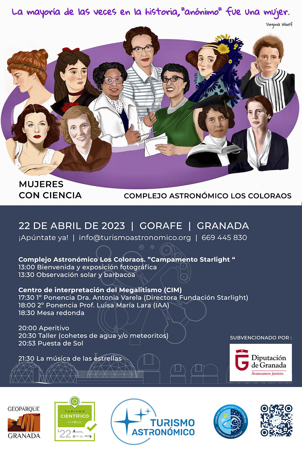 Gorafe es un enclave privilegiado y el Complejo Astronómico Los Coloraos, será el punto de encuentro de unas jornadas donde la mujer será la protagonista. Diferentes científicas y divulgadoras de toda la geografía española e internacional, nos contarán sus experiencias en este campo y las posibilidades que el astroturismo ofrece para el desarrollo socio económico.