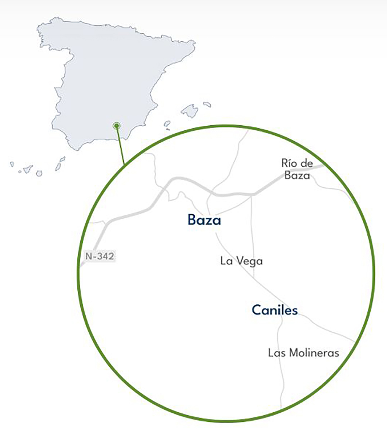 La respuesta obtenida, previa consulta a fuentes de la empresa que lidera el proyecto, no pudo ser más evidente: la planta sigue estando como estaba, pero para que cuadren las cifras reales hay que sumar las cantidades de hectáreas que se ubicarán en el término municipal de Caniles (174) con las del término municipal de Baza (171), lo que hace un total de 395 ha, para el conjunto del proyecto.