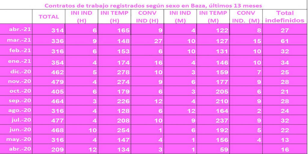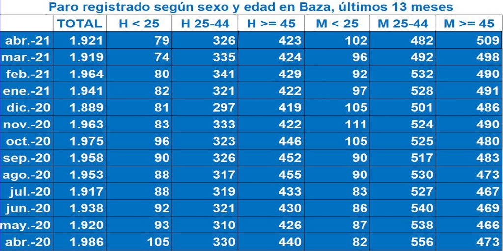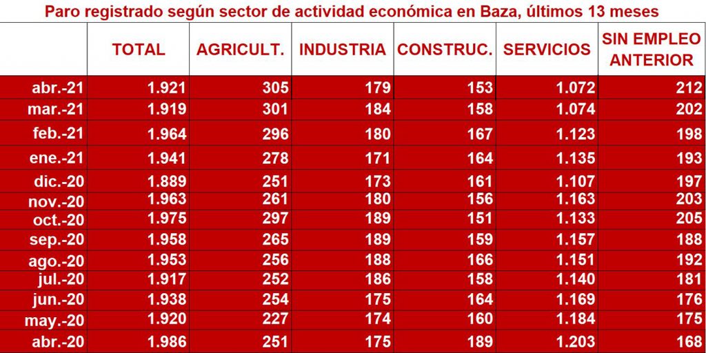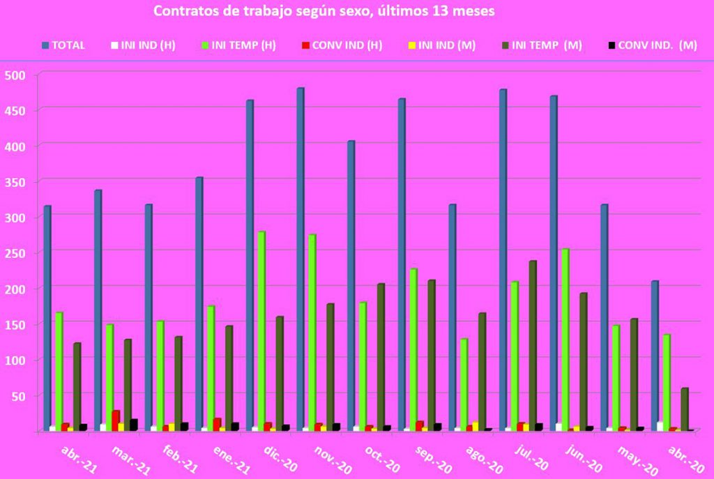 Una situación que se repite también en el mes de abril y de la que el indicativo más explicativo es que la cifra de 1.919 parados del mes de marzo, ha pasado a ser 1.921, es decir, 2 personas más. Si además nos fijamos en el mes de mayo del pasado año, recordaremos que la cifra de parados de entonces era de 1.920, algo que refuerza aún más que esta situación está siendo afectada de manera notable por los cambios normativos que se aplican en materia laboral y en lo que tienen especial incidencia los ERTE que obligan a no acudir a los despidos.