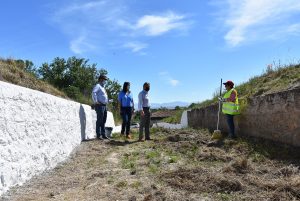 A continuación se ha visitado el entorno de las Siete Fuentes, donde se está llevando a cabo una completa actuación de adecentamiento de la zona consistente en desbroce, arreglo de cunetas, acequias y rambla principal, así como de encalado de los muros, casetas y otros elementos, lo que da a la zona una imagen totalmente renovada y mucho más atractiva.