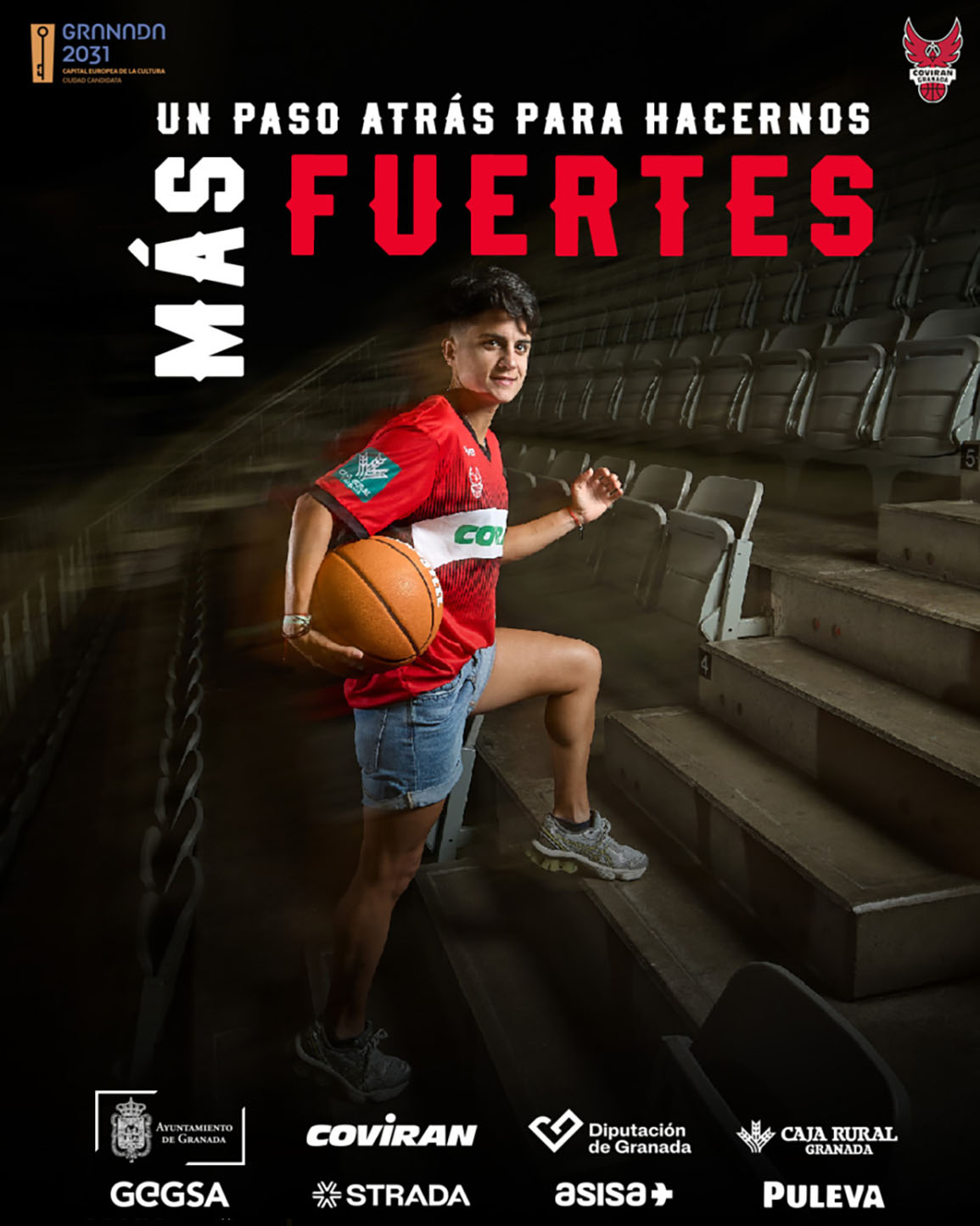 La atleta orcerina María Pérez será la imagen motivadora para la campaña de abonos del CB Covirán Granada de la próxima temporada. El Covirán Granada ha puesto en marcha su campaña de abonados para la próxima temporada en Primera FEB. El club rojinegro vuelve a la segunda categoría del baloncesto nacional, una competición de la que salió hace 3 años tras un brillante ascenso a la Liga Endesa. La entidad presidida por Óscar Fernández-Arenas ha dado un paso atrás, pero con el objetivo de coger carrerilla, tal y como dice el lema ‘Un paso atrás para hacernos más fuertes’.