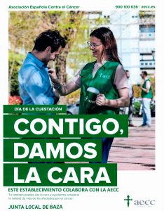 La Junta Local de la Asociación Española contra el Cáncer de Baza, celebra el día 2 de Junio de 2.021, el Dia de la Cuestación Anual. Desde la Junta Local de la AECC se solicita la colaboración de todos los bastetanos, a los que se les quiere indicar que las mesas recaudatorias e informativas estarán ubicadas en nuestra ciudad, como es tradicional, en el Hospital Comarcal, Plaza de San Francisco, Plaza de Mayor, Alameda y tres puntos en el Mercado Semanal, en la antigua estación de ferrocarril o Recinto Ferial.