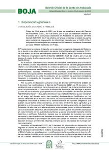 El Comité Territorial de Alerta de Salud Pública de Alto Impacto de la provincia de Granada se reunió el lunes vía telemática, presidido por el delegado territorial de Salud y Familias de la Junta en Granada, Indalecio Sánchez-Montesinos, para analizar los datos epidemiológicos en la provincia granadina, tras lo que propuso la modificación del anexo del decreto del presidente 3/2021 del pasado 15 de enero incorporando.