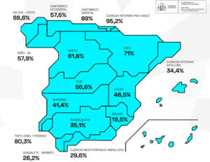 Y, finalmente, por debajo de 30% están las cuencas Mediterránea Andaluza al 29,6%, Guadalete-Barbate al 28,2% y Segura al 19,5%