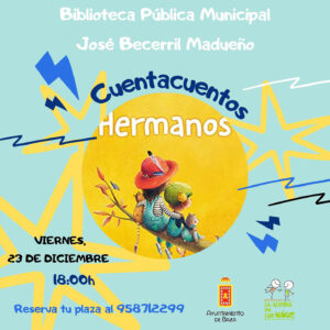 La Biblioteca Municipal propone una Navidad llena de cuentos y programa una charla sobre emociones en menores de entre 0 y 6 años. Todos los viernes, los más pequeños tienen una cita con la Biblioteca Pública Municipal de Baza. El último de este año tendrá lugar este viernes día 23, como siempre a partir de las seis de la tarde con reserva previa en el 958 712 299. En esta ocasión el cuento elegido es “Hermanos”.