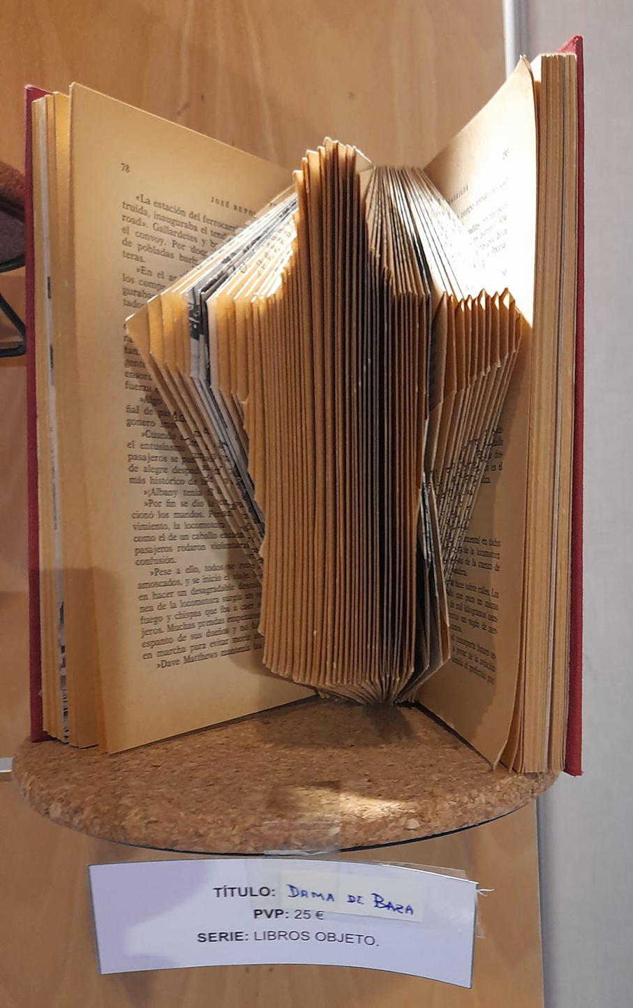 Destacar también dos obras que representan a la Dama de Baza y al Indalo almeriense, realizadas mediante el plegado de páginas en libros recogidos de la basura y que en el caso de nuestra escultura ibérica se da la circunstancia que es un libro que habla sobre el ferrocarril, lo que le transmite una simbología añadida.