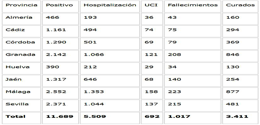 Con estos datos, estas son las cifras que destacan en cada una de las provincias andaluzas: