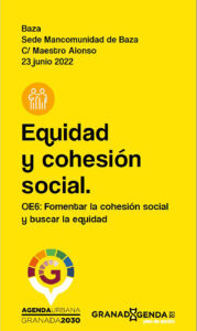 Baza acogerá el próximo jueves una jornada de debate sobre ‘Equidad y cohesión social’ incluida en el plan de acción para la redacción de la Agenda Urbana de la provincia de Granada. La Diputación de Granada, a través del área de Empleo y Desarrollo Sostenible, se encuentra inmersa en la redacción de la Agenda Urbana de la Provincia de Granada, documento marco que guiará el desarrollo sostenible de su territorio en los próximos años. En este proceso, ha organizado una decena de jornadas monotemáticas que profundizan en los diez Objetivos Estratégicos que recoge la Agenda Urbana Española en otros tantos municipios de la provincia. El próximo jueves, 23 de junio, será Baza el municipio que acogerá una jornada centrada en el Objetivo Estratégico 6, que persigue fomentar la cohesión social y buscar la igualdad.