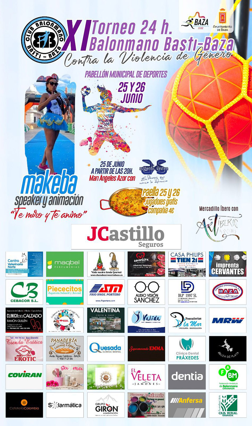 El próximo fin de semana llega el XI Torneo 24h Balonmano Basti-Baza contra la violencia de género, al que llegarán equipos de numerosos lugares de Andalucía. El balonmano será protagonista este fin de semana en Baza, gracias a las 24 horas Balonmano Basti-Baza ‘’Contra la Violencia de Género’’ que organiza el club Basti-Baza y que reunirá en nuestra ciudad a grandes equipos de todos los rincones de Andalucía. La cita será en el Pabellón Municipal de Deportes, durante los días 25 y 26 de junio, sábado y domingo.