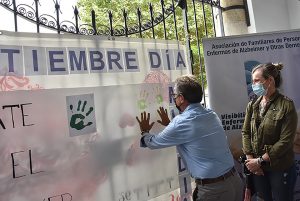 En su intervención, Manolo Gavilán destacó el enorme trabajo de AFA Alcrebite y de los profesionales que trabajan con nuestros mayores, con personas afectadas por Alzheimer y con sus familiares. “El Ayuntamiento está con vosotros en este trabajo que es de todos: instituciones, asociaciones, sociedad en general y también medios de comunicación, que hacen una importante labor de divulgación”, aseguraba el primer edil, a la par que reconocía el valor de encuentros como el de ayer. “Me mojo por el Alzheimer. De corazón”, afirmó Gavilán al plasmar sus manos verdes sobre el mural.