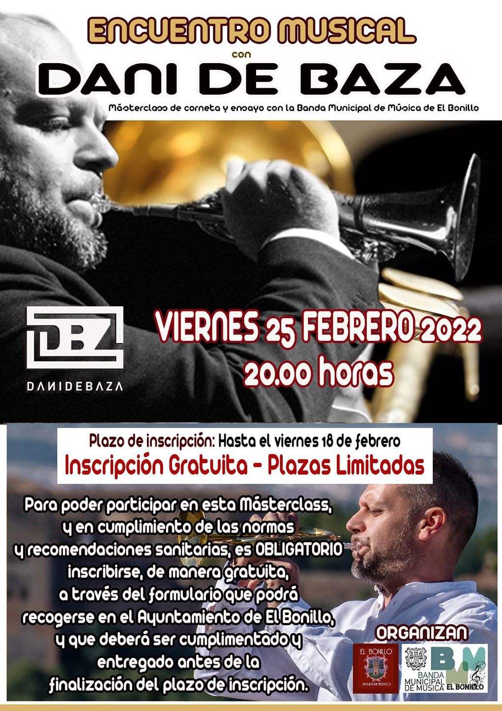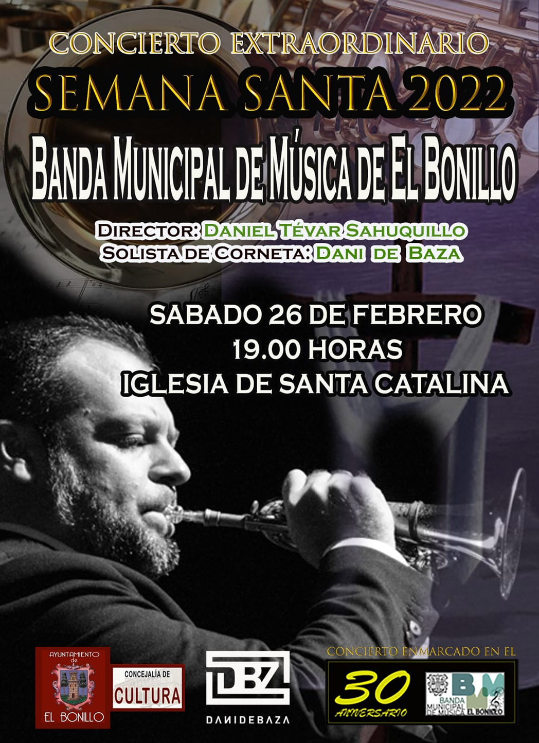 Llegados ahora a las proximidades de la Cuaresma, la música cofrade, de la que Dani Baza es todo un experto, cobra especial interés y son numerosas las citas a las que el músico bastetano es requerido para sus actuaciones en concierto, que empezara el 5 de febrero en Alicante y después en el municipio jiennense de Torreblascopedro. De momento, y con un calendario de conciertos que no se acaba de cerrar ante las nuevas contrataciones, estas son las próximas citas a las que pueden acudir quienes quieran escucharlo: