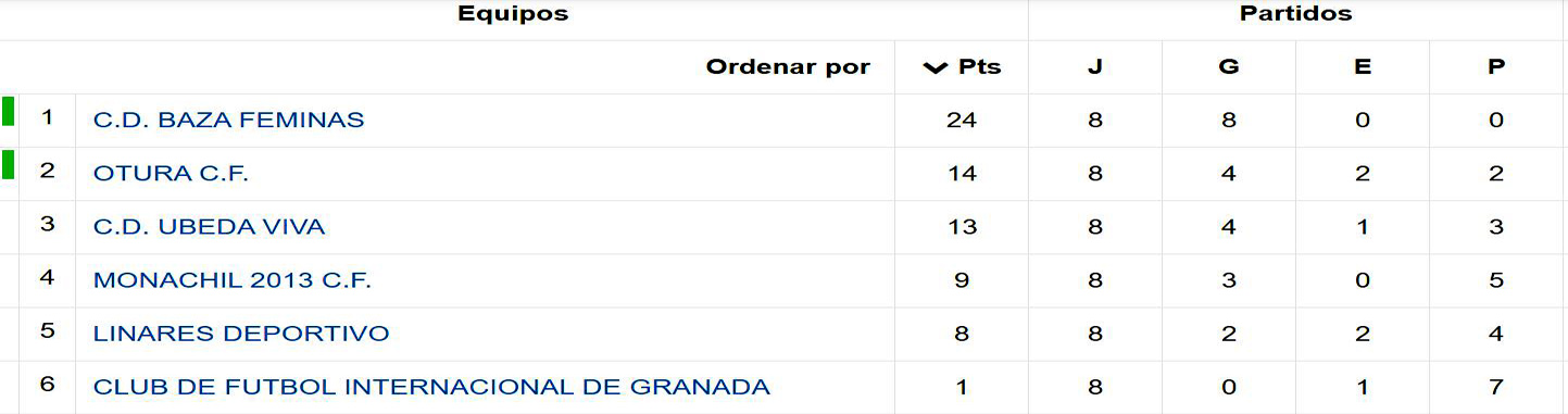 El CD Baza Féminas Dentia J. Castillo golea en su casa al CD Úbeda, 0-6, para sumar su octavo triunfo en ocho partidos y confirmar su conquista del título liguero. El CD Baza Féminas Dentia J. Castillo volvió a ganar de goleada en su visita a tierra jiennense, al CD Úbeda, por 0 a 6, con lo que se proclamó campeón de liga matemáticamente, a falta de tres jornadas.