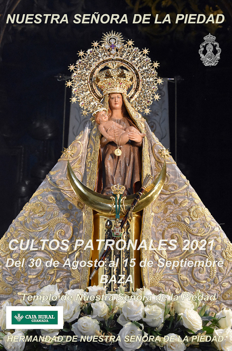 Como viene siendo habitual, el próximo 30 de agosto se celebrará el Solemne Novenario que se prolongará hasta el 7 de septiembre y en el que actuará como predicador D. Emilio José Fernández Valenzuela, Arcipreste del Arciprestazgo Baza – El Jabalcón, Rector del Templo de Nuestra Señora de la Piedad, Párroco de San Juan Bautista y Consiliario de la Hermandad de Nuestra Señora de la Piedad y, durante toda la Novena a la Santísima Virgen de la Piedad, la colecta de alimentos será destinada a Cáritas Baza.