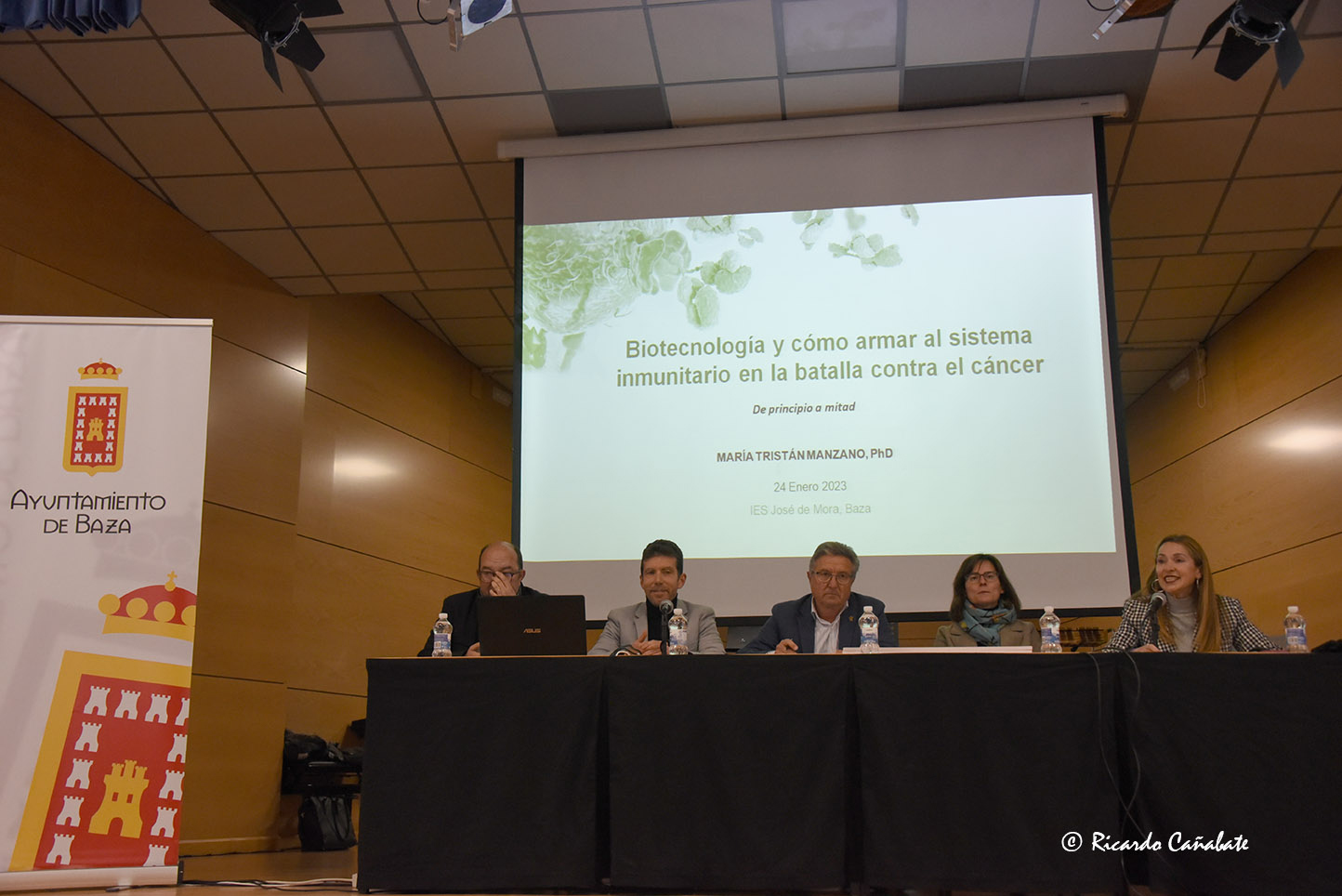 La XIV edición de la entrega de estos reconocimientos públicos al esfuerzo y la dedicación de los estudiantes se completó con una ponencia a cargo de la joven bastetana María Tristán Manzano, actualmente directora científica de la empresa LentiStem Biotech, ganadora del premio Merck-AseBio en su primera edición. En su ponencia ante el alumnado de 1º de Bachillerato de los tres institutos bastetanos María quiso compartir su experiencia a la hora de elegir su camino formativo y profesional e impartió la charla “Biotecnología y cómo armar al sistema inmunitario en la batalla contra el cáncer. Del principio a la mitad”.