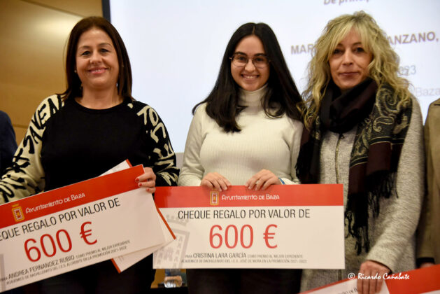 El Ayuntamiento reconoce a los mejores expedientes académicos de Bachillerato durante el curso 2021/2022, en un acto con una brillante e instructiva ponencia de María Tristán. El Ayuntamiento de Baza celebraba este martes, 24 de enero, en el salón de actos del Conservatorio Profesional de Música “José Salinas” el acto de entrega de los XIV Premios a los Mejores Expedientes Académicos de Bachillerato de los IES de la ciudad durante el curso 2021/2022, dotado cada uno de ellos con 600 euros. En los tres casos han sido alumnas las que han conseguido la distinción: Cristina Lara García, del IES José de Mora; Ana María García Segura, del IES Pedro Jiménez Montoya; y Andrea Fernández Rubio, del IES Alcrebite.