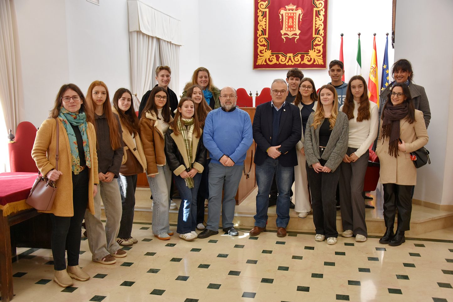 El Ayuntamiento de Baza recibe a un grupo de alumnos del IES Alcrebite junto a compañeros de Italia y Francia con los que comparten un programa Erasmus. El Ayuntamiento de Baza ha recibido en los últimos días la visita de un grupo de alumnos y profesores del IES Alcrebite, acompañados por estudiantes procedentes de Italia y Francia con los que comparten un Programa Erasmus. La actividad se enmarca en los intercambios educativos internacionales que desarrollan habitualmente los centros del municipio y que incluyen, entre otras acciones, un recorrido institucional por la ciudad.
