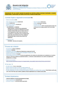 Toda la documentación relativa al expediente, así como los detalles sobre requisitos y condiciones, está disponible para su consulta en la Plataforma de Contratación del Estado, a través del siguiente enlace: https://contrataciondelestado.es/wps/poc?uri=deeplink:detalle_licitacion&idEvl=dNWwWnhzuC2HCIsjvJ3rhQ%3D%3D