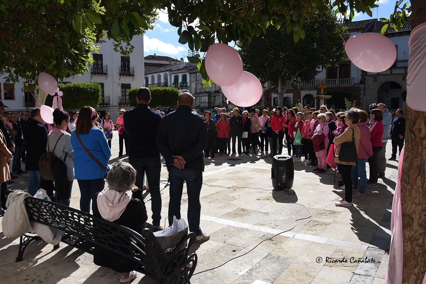 Por su parte, el presidente de la Junta Local leyó un manifiesto con datos sobre la incidencia de esta enfermedad y de los resultados que está teniendo la lucha continua contra ella. Para terminar, los reunidos realizaron una cadena humana alrededor de la fuente de la Plaza Mayor, un símbolo que representa la unión de esfuerzos contra el cáncer de mama.