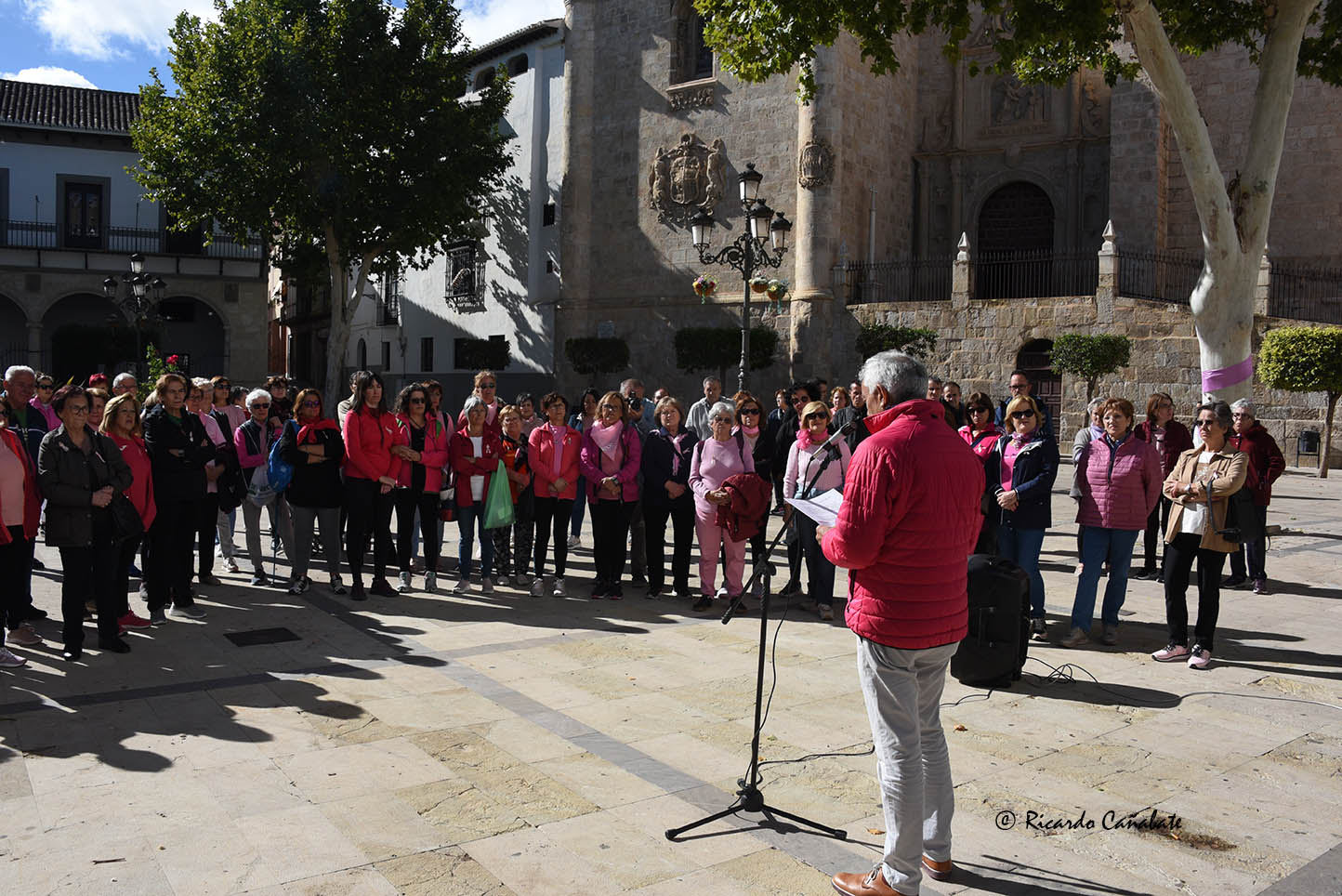 La Ruta Saludable que esa mañana organizaba la Junta Local de la Asociación Española Contra el Cáncer de Baza, en la que estuvieron presentes voluntarias de otras localidades de la comarca, concluyó a las puertas del Ayuntamiento, para volver a gritar fuerte entre todos contra esta maldita dolencia. A la comitiva se incorporaron las autoridades locales, encabezadas por el alcalde, Pedro J. Ramos, y la concejala de Bienestar Social, Priscila Martínez, y los representantes de fuerzas de seguridad y bomberos.