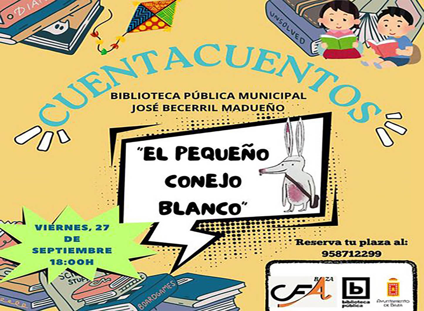Este viernes, 27 de septiembre, vuelve la programación de “Cuentacuentos” a la Biblioteca Municipal “José Becerril Madueño”. Finalizado ya el verano, y con la normalización en el retorno a un nuevo curso escolar, vuelve también a nuestra Biblioteca Municipal “José Becerril Madueño” la programación de “Cuentacuentos”, que inicia su nueva temporada el próximo viernes, 27 de septiembre.