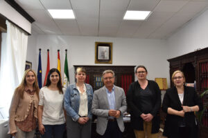 Recepción en el Ayuntamiento a la Escuela Oficial de Idiomas y profesoras francesas de visita a nuestra ciudad e interesadas en un proyecto Erasmus relacionado con Baza. La Escuela Oficial de Idiomas “Ibn Al-Qaysi Al-Basti Baza” se encuentra estos días inmersa en un proyecto de intercambio Erasmus, de movilidad del profesorado, que gira en torno al patrimonio natural, gastronómico y cultural, lo que le lleva a buscar proyectos de centros educativos europeos que trabajen en torno a esos conceptos.