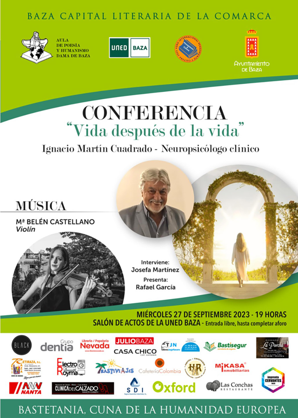 La UNED de Baza celebra esta tarde una conferencia sobre “Vida después de la vida”, a cargo del neuropsicólogo clínico Ignacio Martín Cuadrado. El salón de actos del Centro Asociado a la UNED de Baza acoge en la tarde de hoy, miércoles 27 de septiembre, a partir de las siete de la tarde, una interesante conferencia con entrada libre, hasta completar el aforo y que responde al título de “Vida después de la vida”.