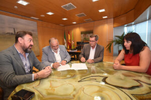 El presidente de la Diputación en funciones, José Entrena, y la diputada de Bienestar Social en funciones, Olvido de la Rosa, han recibido al coordinador provincial de Cruz Roja, Francisco González, y al delegado especial de la ONG, Gabino García, para la firma del convenio, cuya principal línea de acción del acuerdo incluye la aportación de 50.000 euros por parte de la institución provincial.
