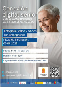 La actividad se enmarca en el programa Conexión Digital Senior, orientado a reducir la brecha digital entre la población mayor. El curso tiene una duración total de ocho horas, distribuidas en cuatro sesiones presenciales de dos horas cada una, que se celebrarán los días 17, 19, 24 y 26 de junio.