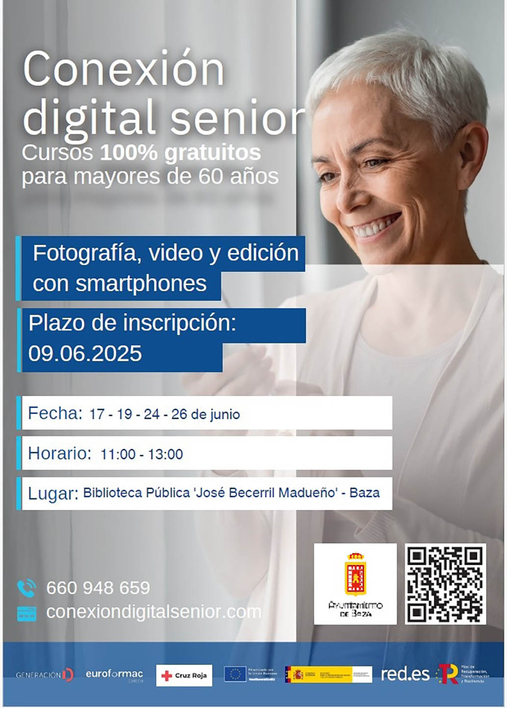 La Biblioteca Municipal de Baza ofrece un curso gratuito de fotografía digital para mayores de 60 años, con cuatro sesiones y necesidad de inscripción previa antes del 9 de junio. La Biblioteca Municipal “José Becerril Madueño” de Baza acogerá durante el mes de junio un curso gratuito de fotografía digital dirigido a personas mayores de 60 años, con el objetivo de mejorar sus competencias tecnológicas y fomentar el uso creativo de los dispositivos móviles.
