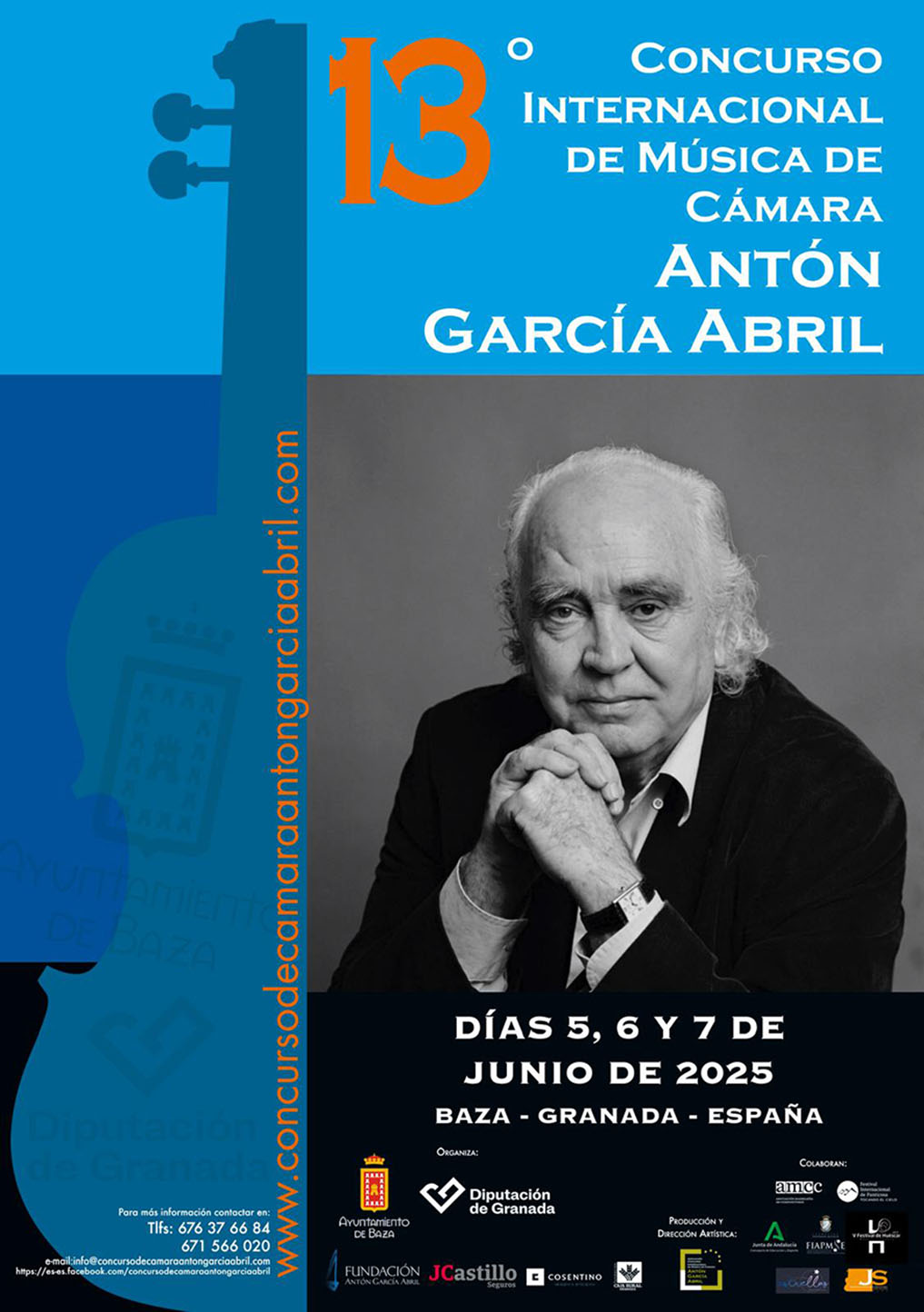 El evento está organizado por la Asociación Concurso Internacional de Música de Cámara “Antón García Abril”, en coordinación con la Concejalía de Cultura del Ayuntamiento de Baza. La inauguración tendrá lugar el jueves 5 de junio a las 20:00h en el Teatro Dengra, con un concierto del aclamado quinteto de metales Spanish Brass, grupo que mantuvo una estrecha relación con el maestro García Abril, para quien escribió varias obras. Las entradas están disponibles en la Casa de la Cultura de Baza y online.
