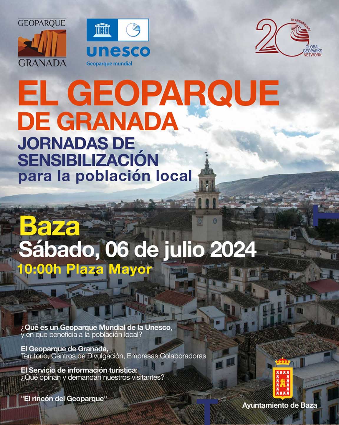 El próximo sábado 6 de julio, en la Plaza Mayor de Baza, se celebrará una Jornada de sensibilización e información sobre el Geoparque de Granada. Se trata de una iniciativa consistente en la instalación de un punto informativo en la Plaza Mayor de Baza, que estará disponible desde las 10:00 h. del sábado 6 de julio y en el que se ofrecerá un asesoramiento totalmente gratuito promovido por la oficina de promoción del Geoparque de Granada, en la que se unen circunstancias naturales, turísticas, sociales y patrimoniales, entre otras.