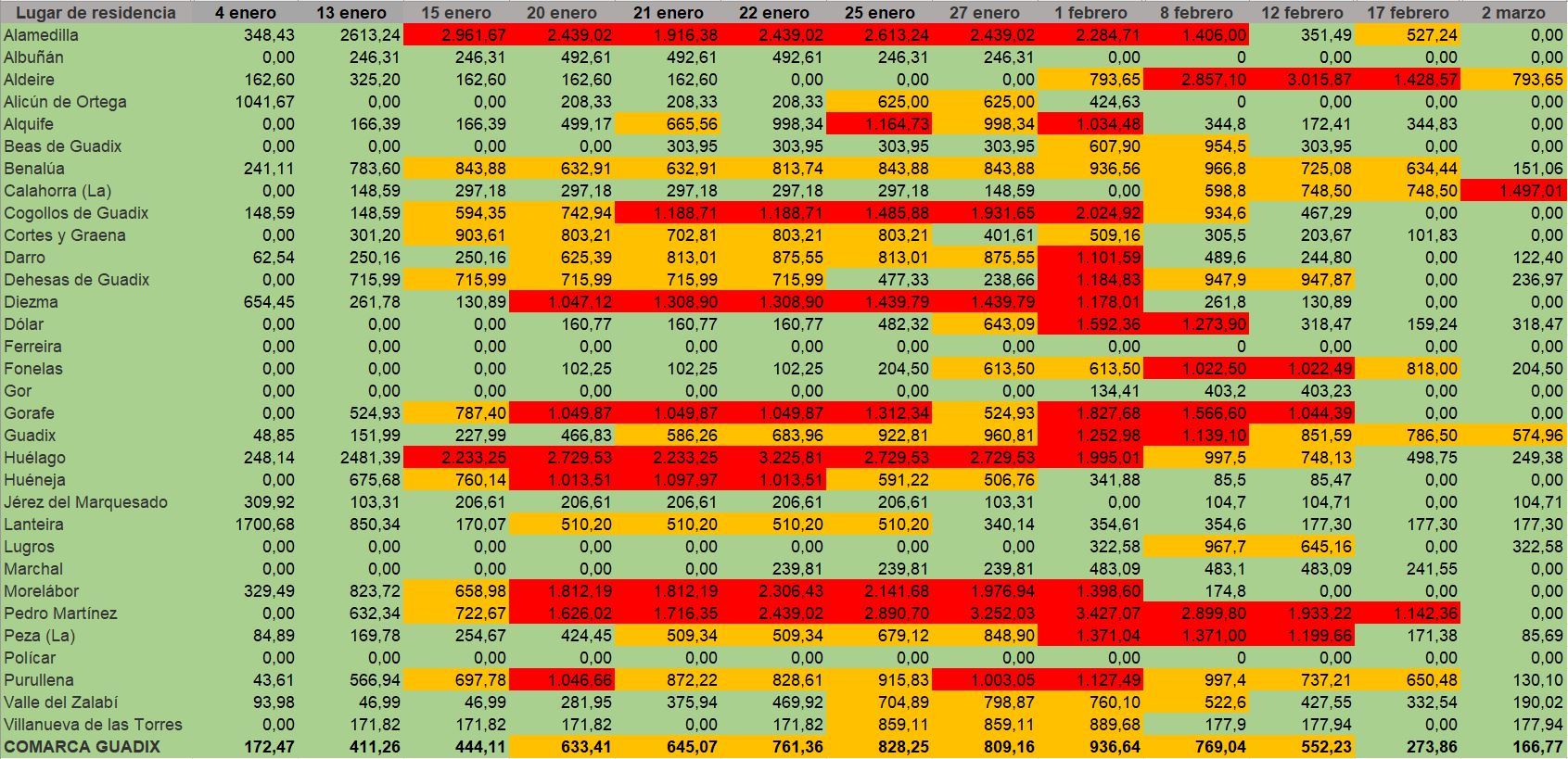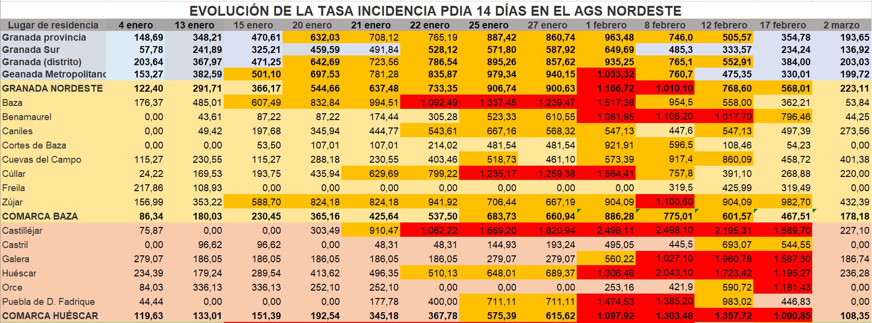 Junto a esta noticia ofrecemos la situación actual de la tasa de incidencia de los diferentes municipios del AGS Nordeste de Granada, así como una evolución de dichos datos en las últimas semanas